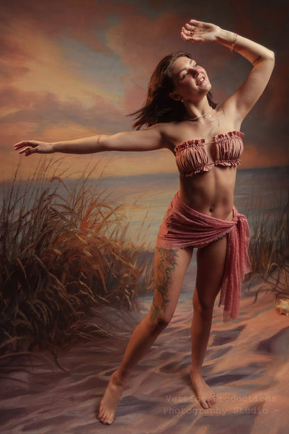 Avezano Beach with Weeds Oil Painting Style Photography Backdrop