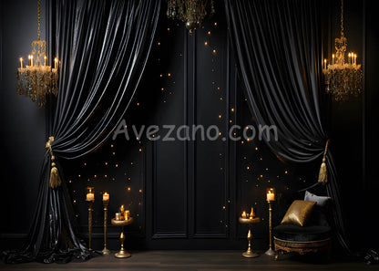 Avezano Black Curtains and Walls Light and Candle on FirePhotography Backdrop