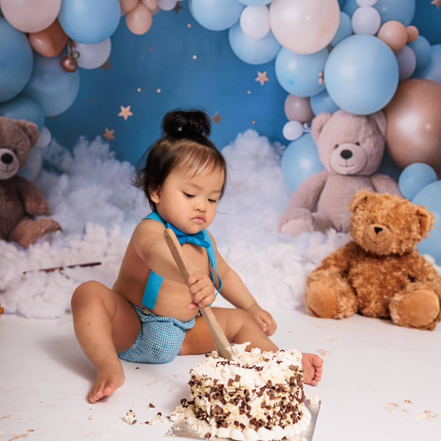 Avezano Blue Balloon Arch and Teddy Bear Photography Background