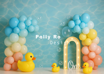 Avezano Blue Water Waves and Little Yellow Ducks Photography Backdrop Designed By Polly Ro Design