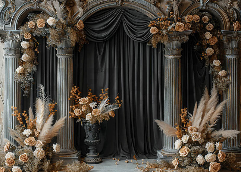 Avezano Bohemian Roses and Black Curtain Photography Backdrop