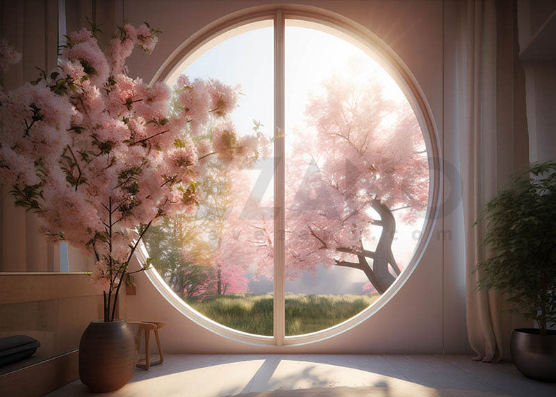 Avezano Cherry Trees and Classical Doors Window Photography Backdrop