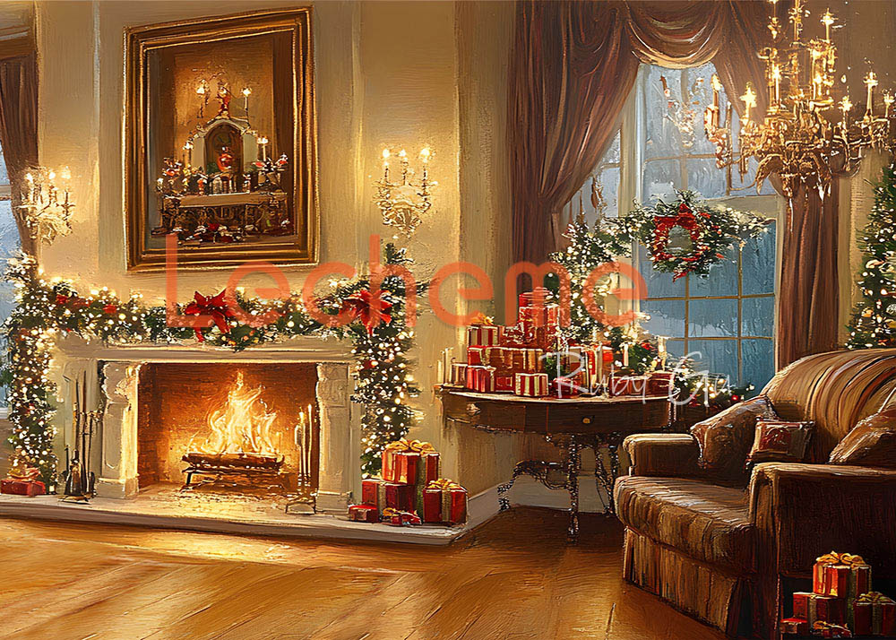 Avezano Christmas Fireplace Photography Backdrop By Lecheme Ruby Gu