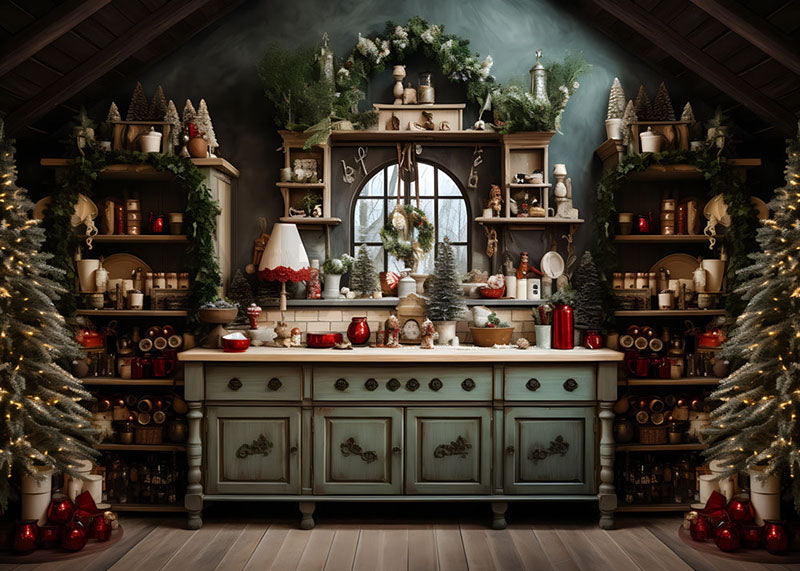 Avezano Christmas Kitchen Decor Photography Backdrop