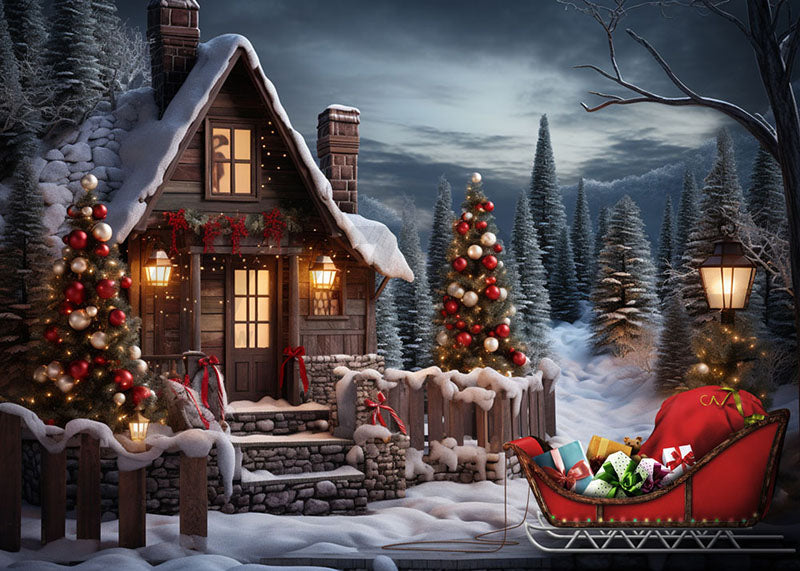 Avezano Christmas Presents and a Snow House Photography Backdrop