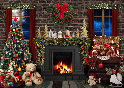 Christmas Retro Avezano Burning Fireplace Photography Background