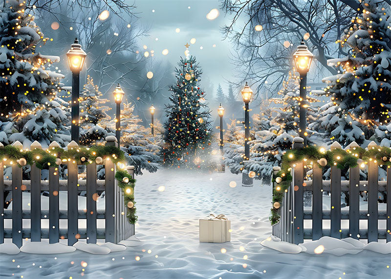 Avezano Christmas Tree in the Snow and Lights Photography Backdrop