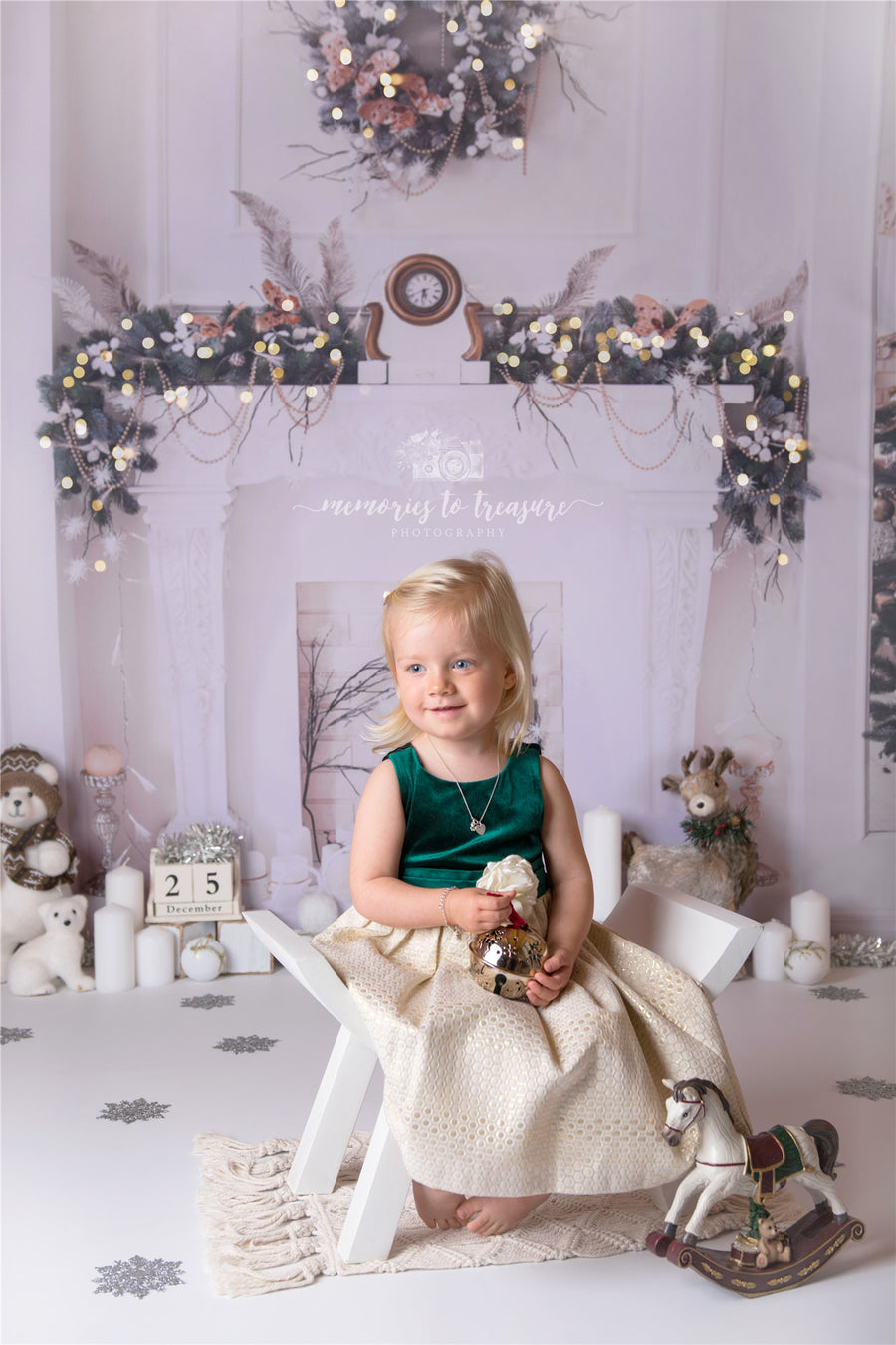 Avezano Christmas White Wall Wreath Photography Backdrop
