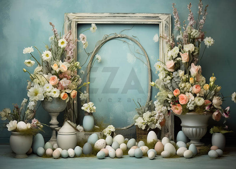 Avezano Easter Blue wall and Picture Frame Photography Backdrop