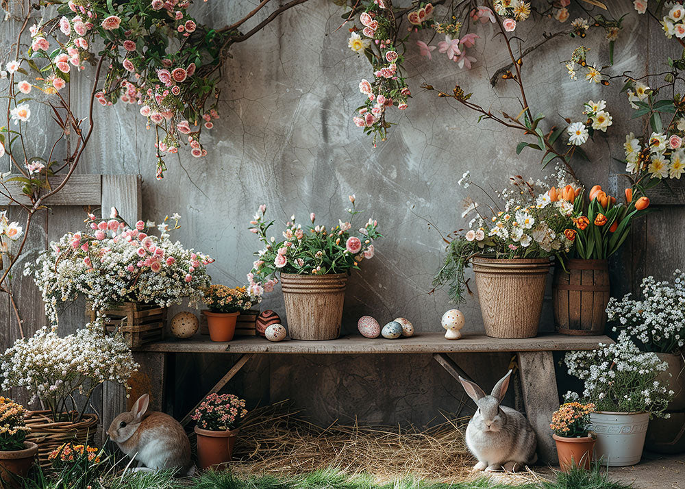 Avezano Easter Potted Flowers and Grey Wall Photography Backdrop