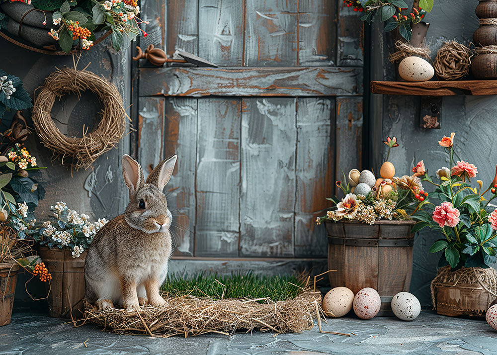 Avezano Easter Potted Flowers and Wall Photography Backdrop