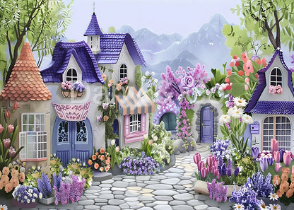 Avezano Fairy-Tale Town Street Scene Purple Backdrop Designed By Danyelle Pinnington