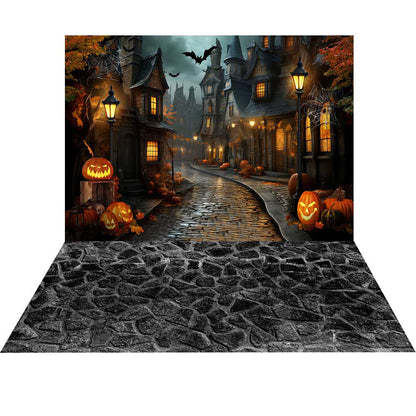 Avezano Halloween Town Street 2 pcs Set Backdrop