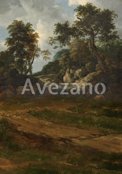 Avezano Mountain Stream and Trees Oil Painting Photography Backdrop