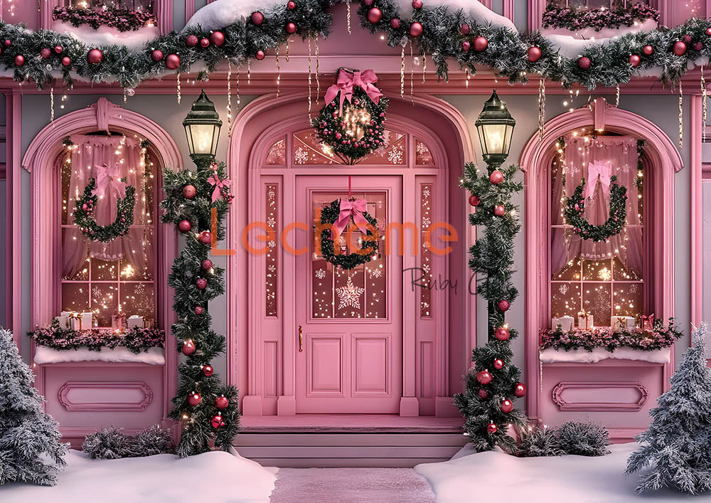 Avezano Pink Christmas Decorations on the Door Photography Backdrop By Lecheme Ruby Gu
