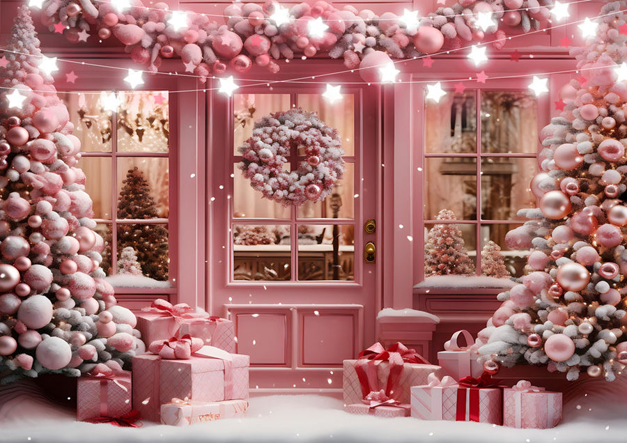 Avezano Pink Christmas Store Gift Photography Backdrop