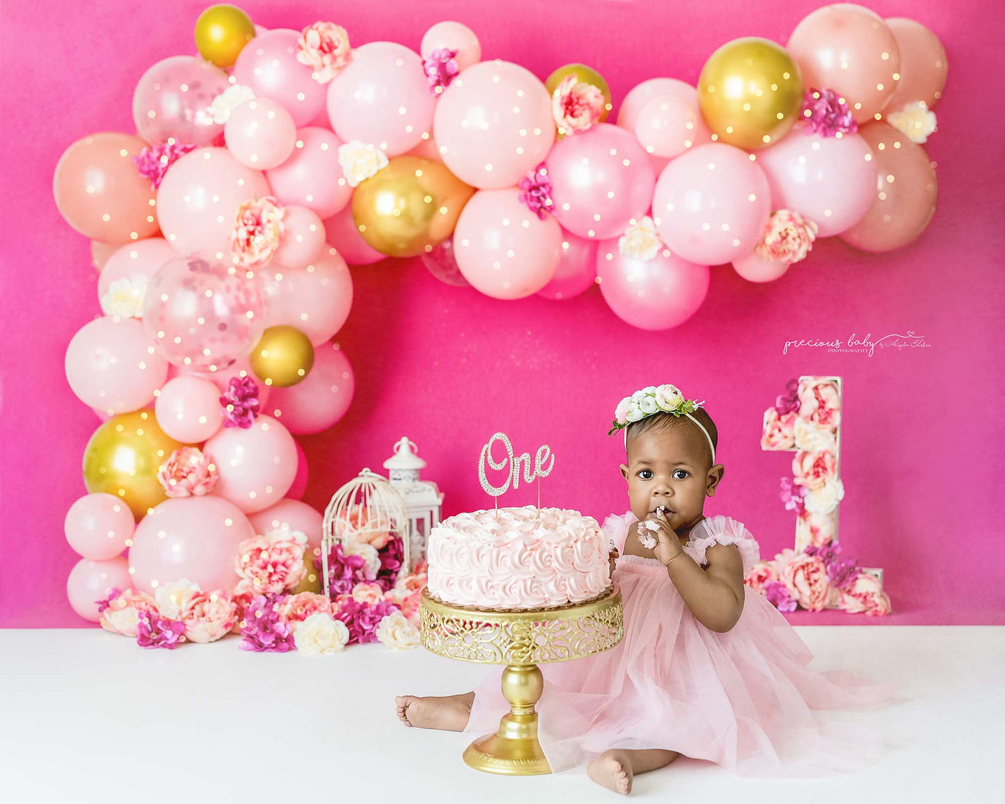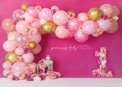 Avezano Pink One-year-old Balloon Party Photography Backdrop Designed By Angela Forker