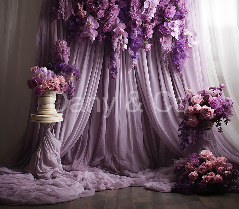 Avezano Purple Curtains and Rose Backdrop Designed By Danyelle Pinnington