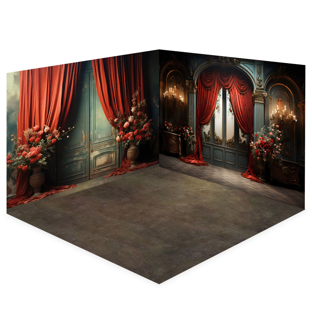 Avezano Red Curtains Spring Flowers Living Room Photography Backdrop Room Set
