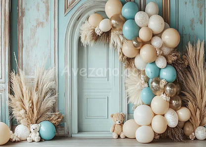 Avezano Retro Green Wall Bohemian Balloons Photography Background