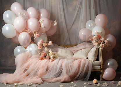 Avezano Sofa and Pink Balloons Birthday Cake Smash Photography Background