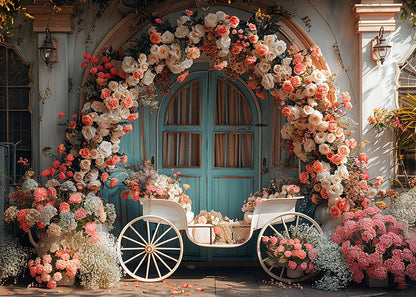 Avezano Spring Blue Wooden Door and Flower Arch Photography Backdrop