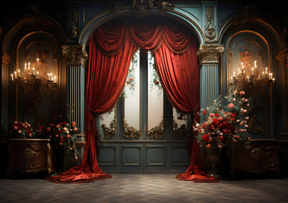 Avezano Spring Red Curtains and Doors Photography Backdrop