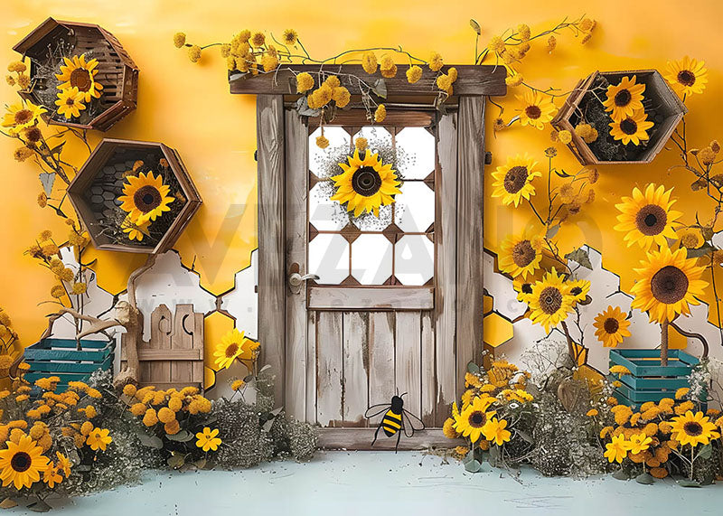 Avezano Spring Sunflower and House Photography Backdrop