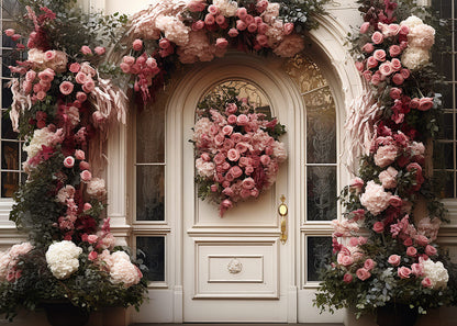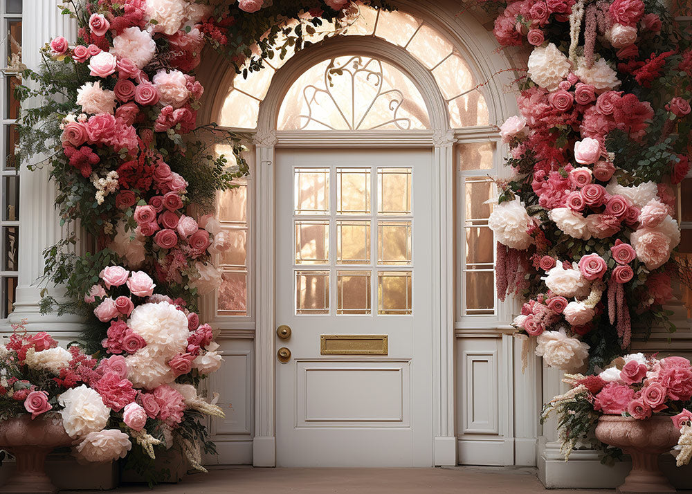 Avezano Spring White Wooden Door Decorated with Flowers Photography Backdrop Room Set