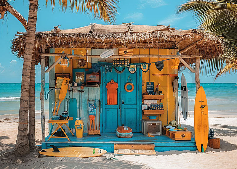 Avezano Summer Orange Color House and Blue Door on the Beach Photography Backdrop