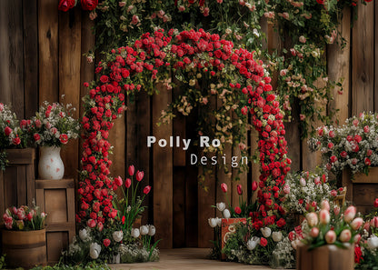 Avezano Valentine's Day Wooden Door and Rose Arch Photography Backdrop Designed By Polly Ro Design