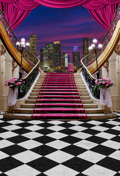 Avezano Vintage Castle Staircase City View Photography Backdrop