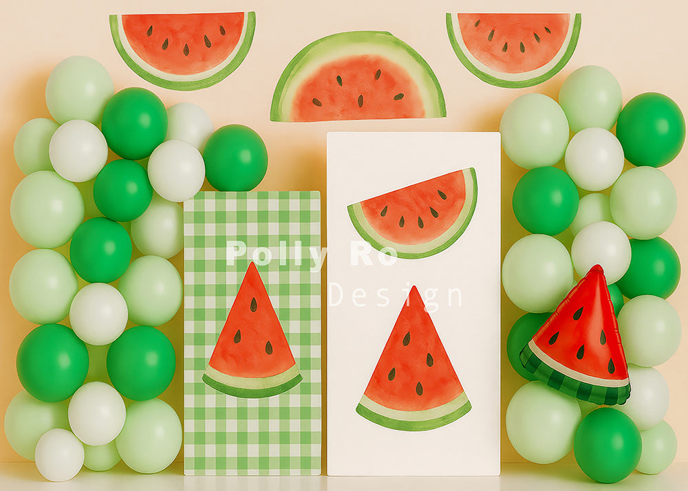Avezano Watermelon and Green Balloon Photography Backdrop Designed By Polly Ro Design