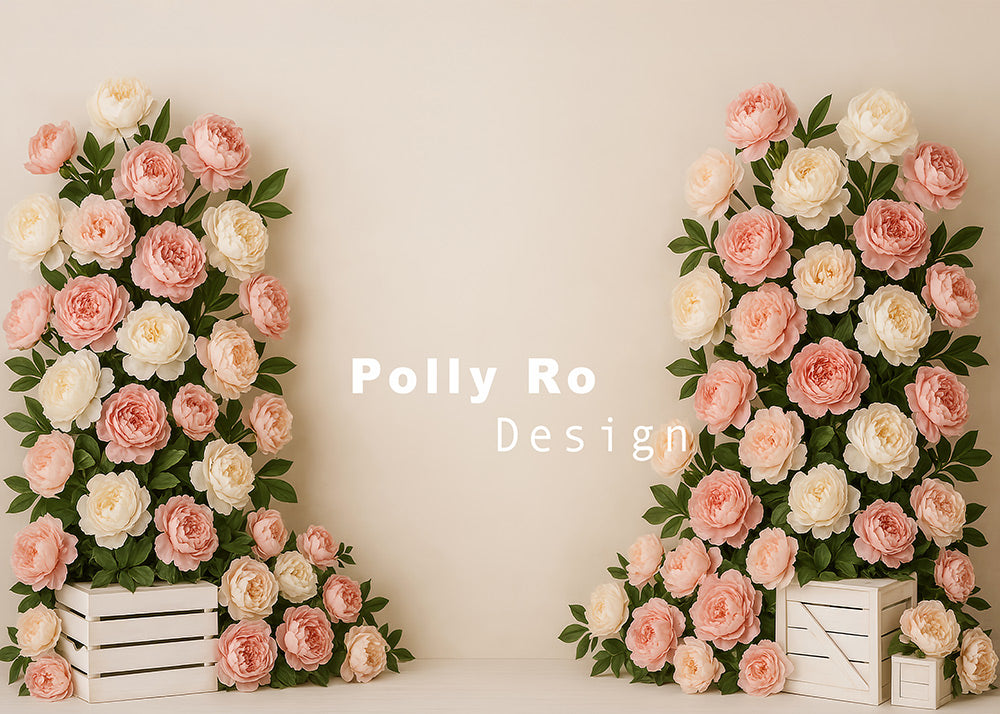 Avezano White and Pink Peony Wedding Flowers Photography Backdrop Designed By Polly Ro Design