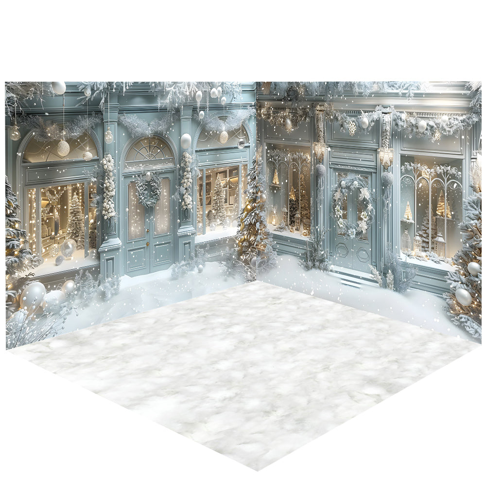 Avezano Winter Christmas Blue Shop Photography Backdrop Scene Room Set