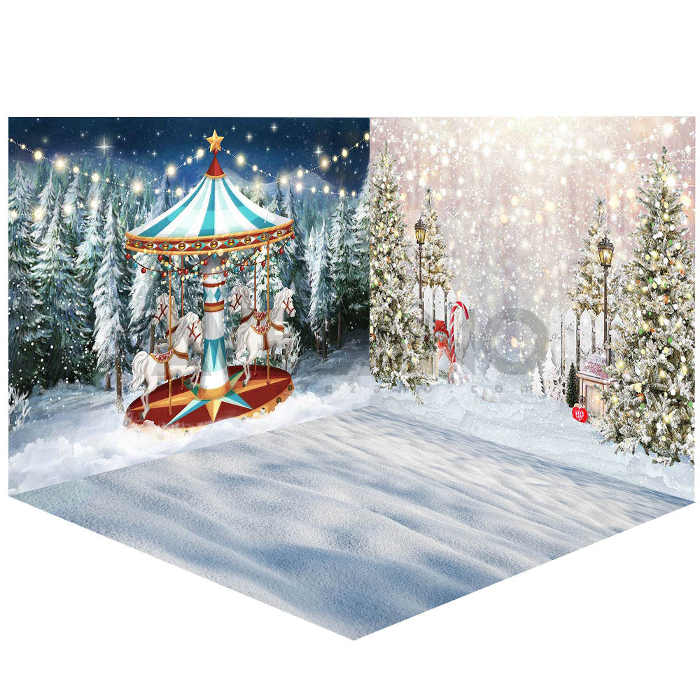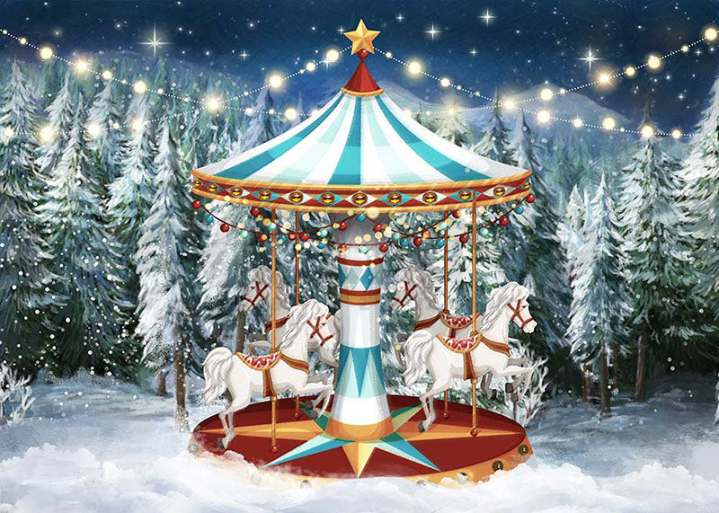 Avezano Winter Christmas Carousel Photography Backdrop Room Set