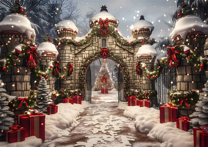 Avezano Winter Christmas Castle Gifts in the Snow Photography Backdrop