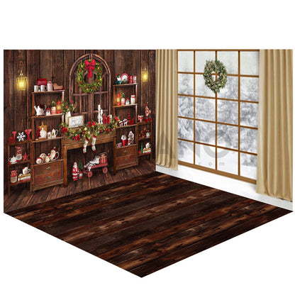 Avezano Winter Christmas Gift Decoration Photography Backdrop Room Set