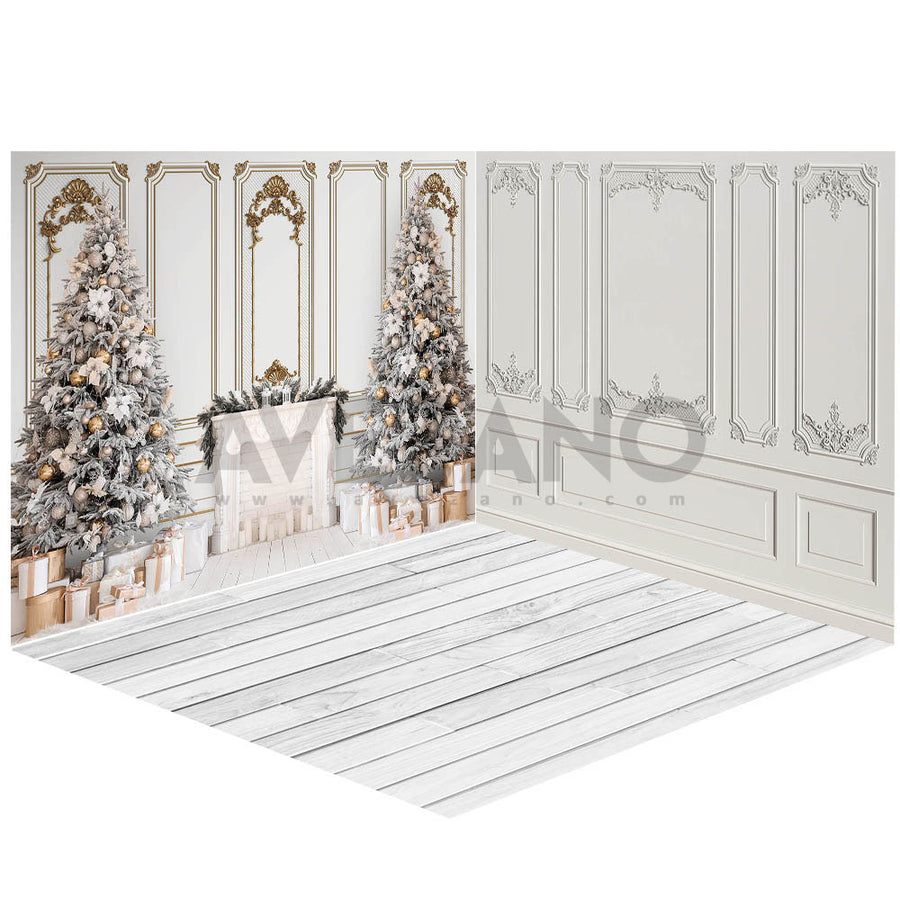 Avezano Winter White Walls and a Christmas Tree Photography Backdrop Room Set