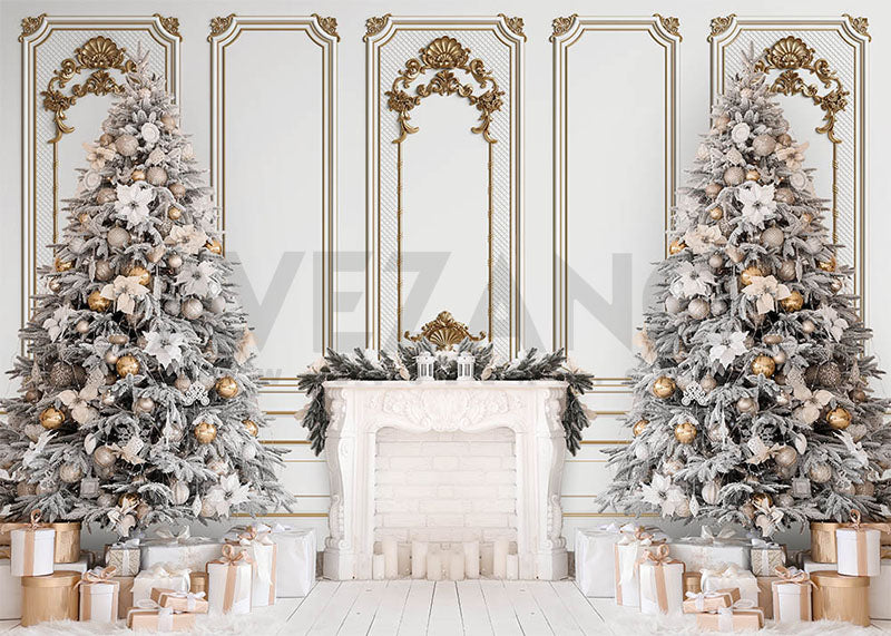 Avezano Winter White Walls and a Christmas Tree Photography Backdrop Room Set